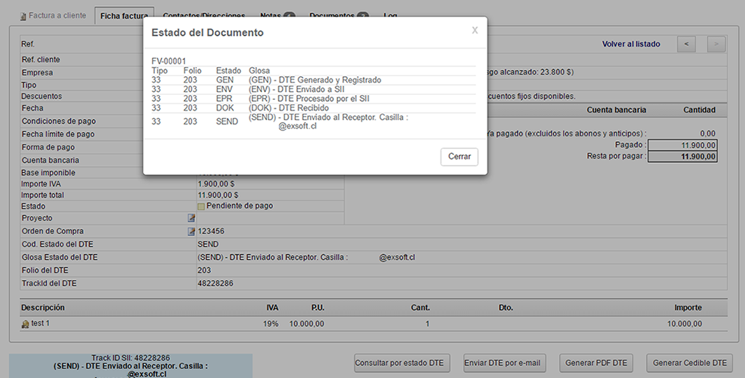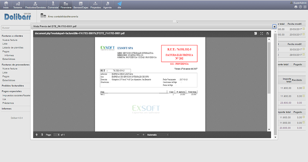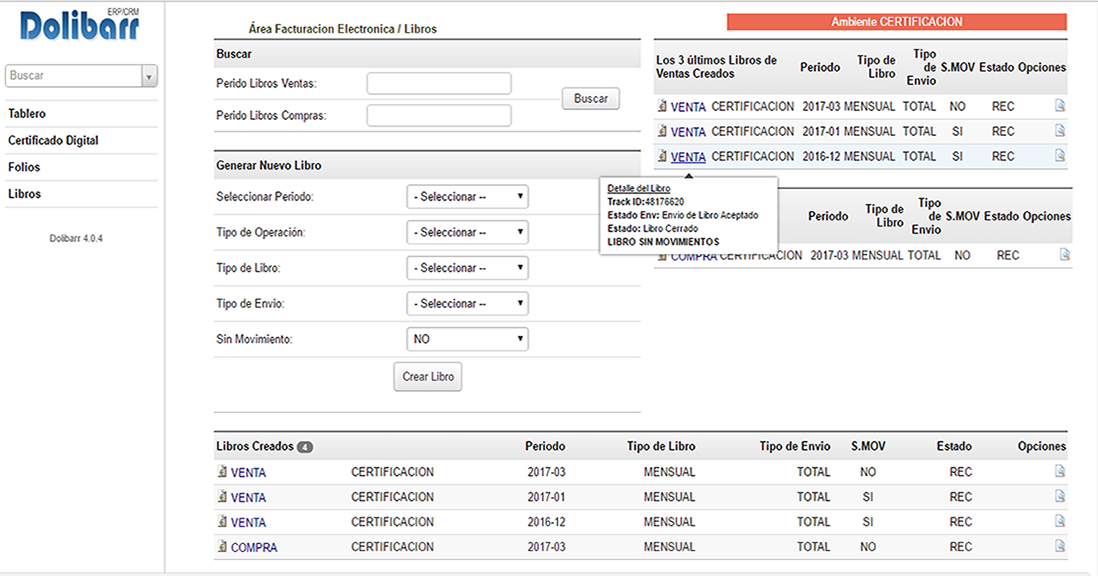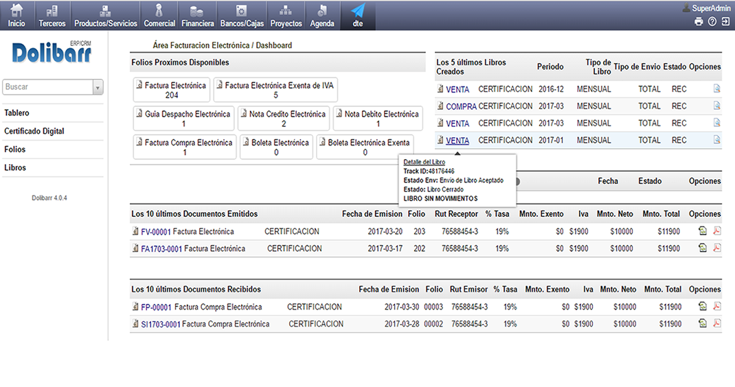 DoliFex aparte de ser intuitivo es rápido y asegura la veracidad de los documentos emitidos indicando si este fue recibido, autorizado por el SII y si el cliente lo acepto o reclamó.